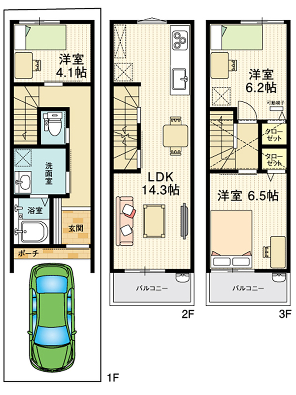 | 間取り | 3LDK | 建物構造 | 木造3階建て |