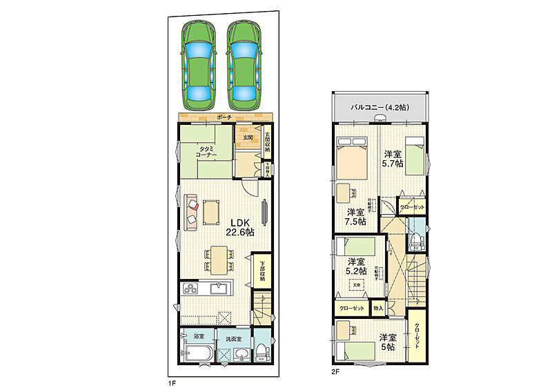 ・全3区画すべてが2階建て&駐車2台可能のゆとり設計