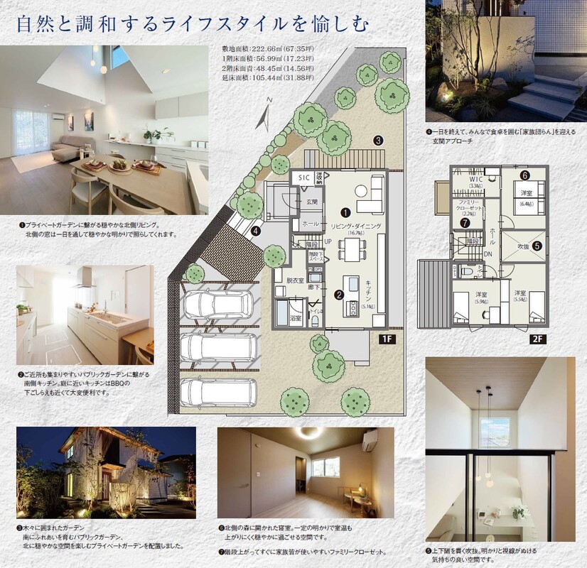 | 建物面積 | 105.44m2 | 土地面積 | 222.66m2 |