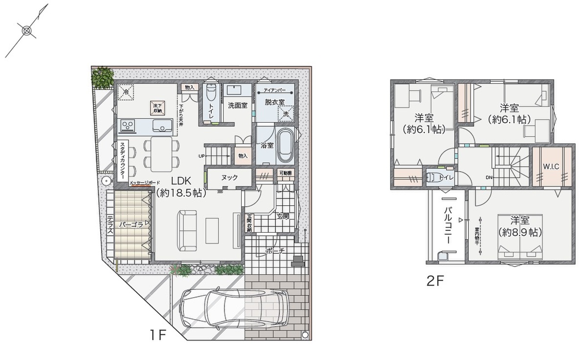 - ※完成予想図やCG合成画像は、門塀・植栽・庭・外観等、実際とは多少異なる場合があります。