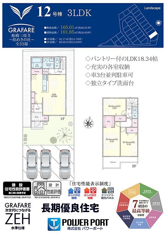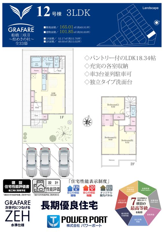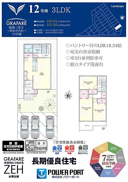 12号棟 間取り 3LDK 価格 未定 建物面積 101.85m2 土地面積 165.01m2 -
