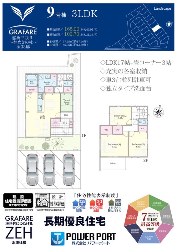 | 建物面積 | 103.91m2~107.51m2 | 土地面積 | 165.00m2~172.95m2 |