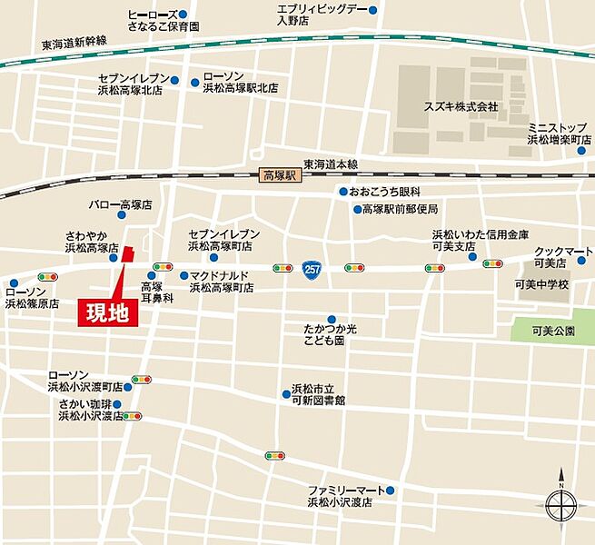 - JR東海道本線「高塚」駅 車で約710~760km遠鉄バス「高塚西」停 徒歩1分~2分