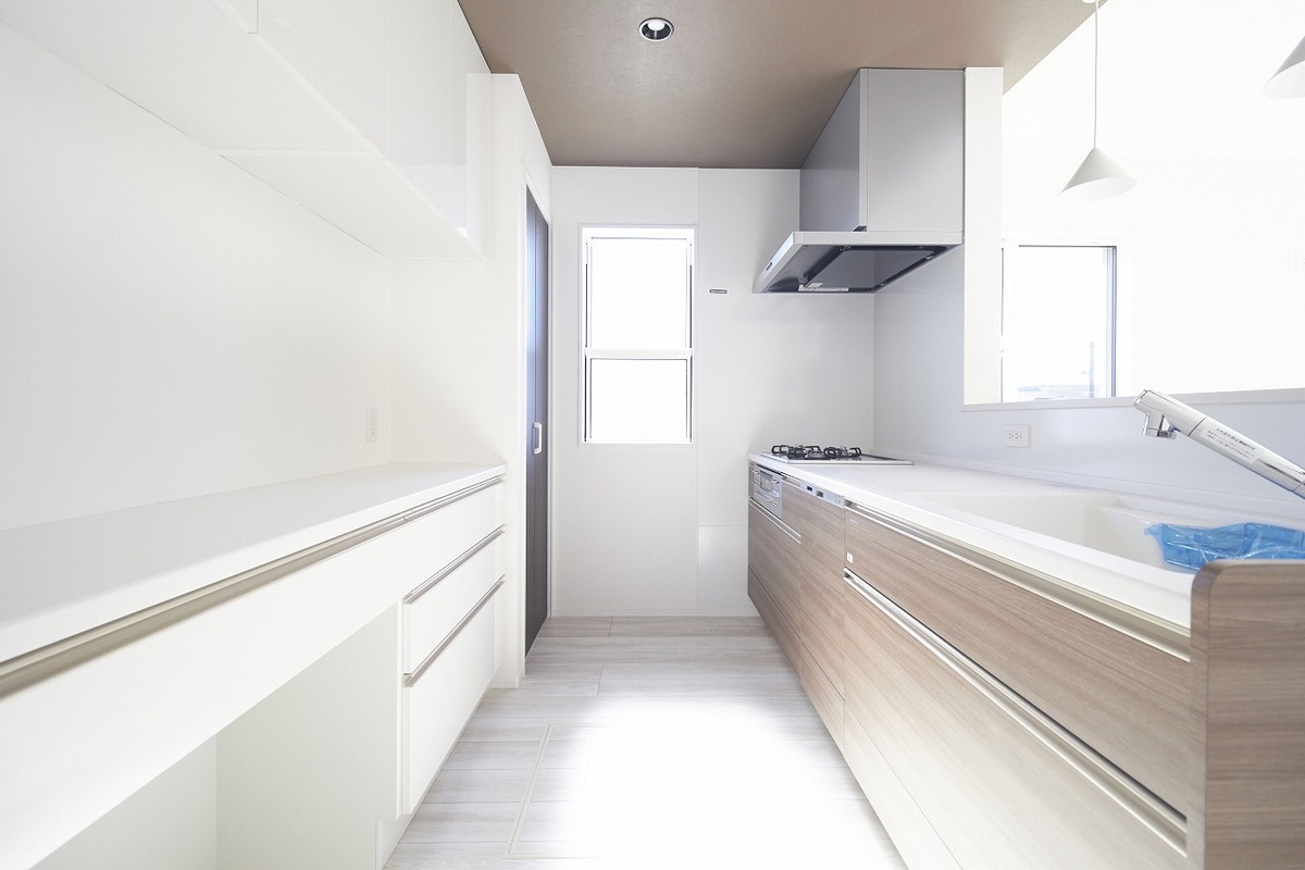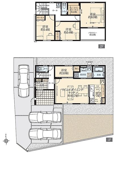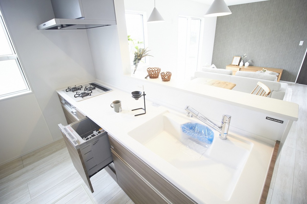 駐車スペース3台確保!各居室に収納完備。タカラスタンダード製の住宅設備!キッチンは食洗器付き・洗面化粧台はゆったり90cm幅・ユニットバスはお手入れしやすい磁器タイル床。