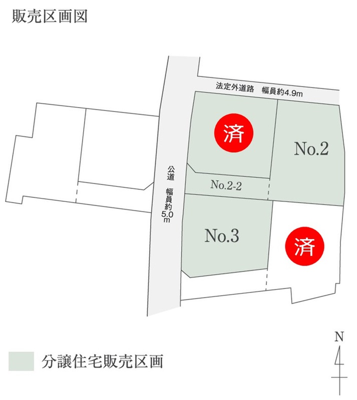 | 駐車場 | 3台 | 道路の幅員 | 公道約5.0m、法定外道路約4.9m |