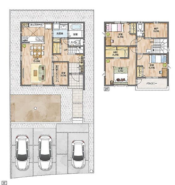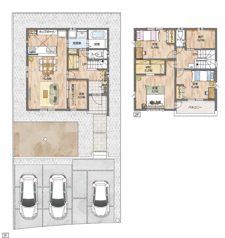 - ※完成予想図やCG合成画像は、門塀・植栽・庭・外観等、実際とは多少異なる場合があります。