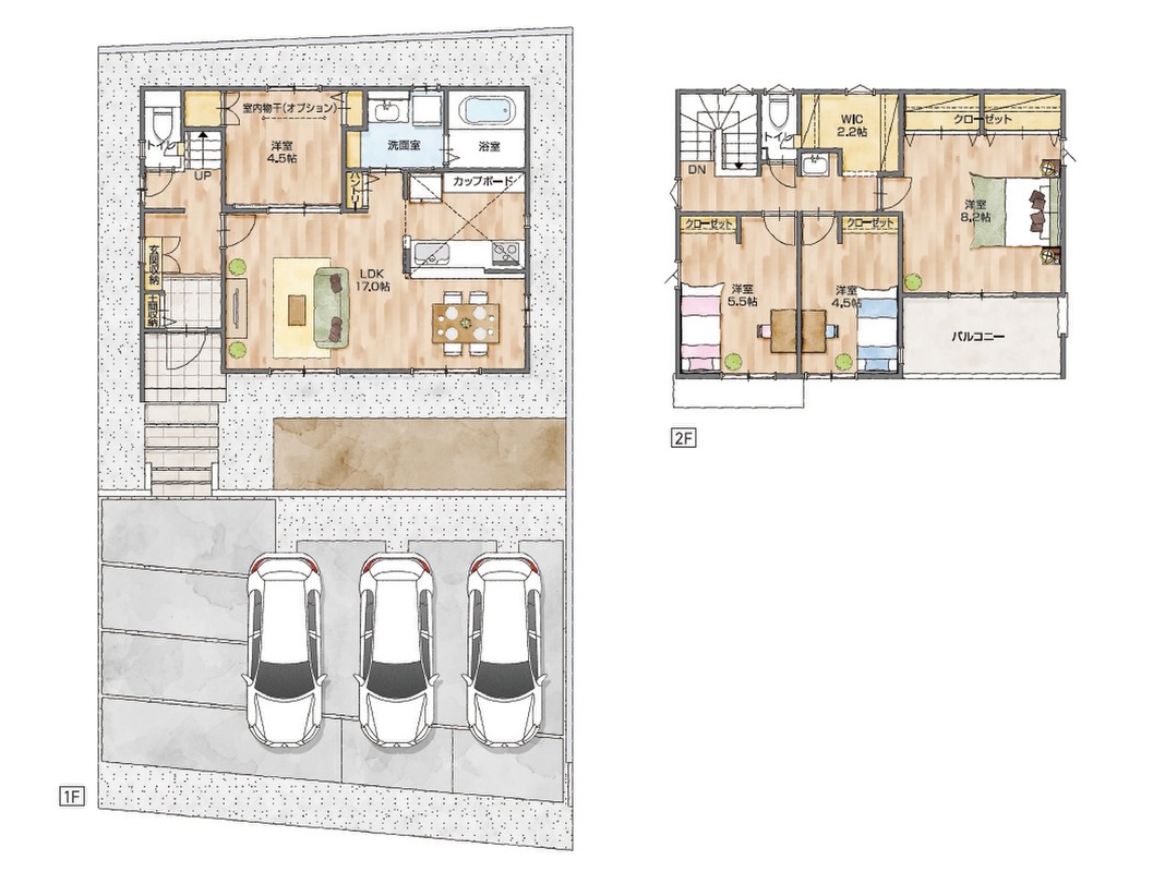 - ※完成予想図やCG合成画像は、門塀・植栽・庭・外観等、実際とは多少異なる場合があります。