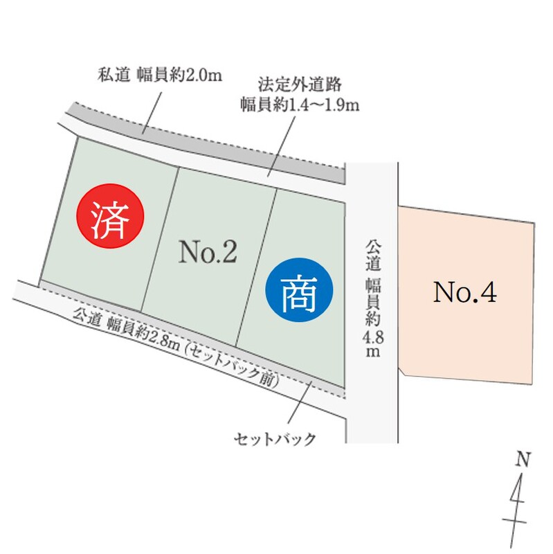 | 駐車場 | - | 道路の幅員 | 公道 約北側2.8・南側約4.8m セットバック含む |