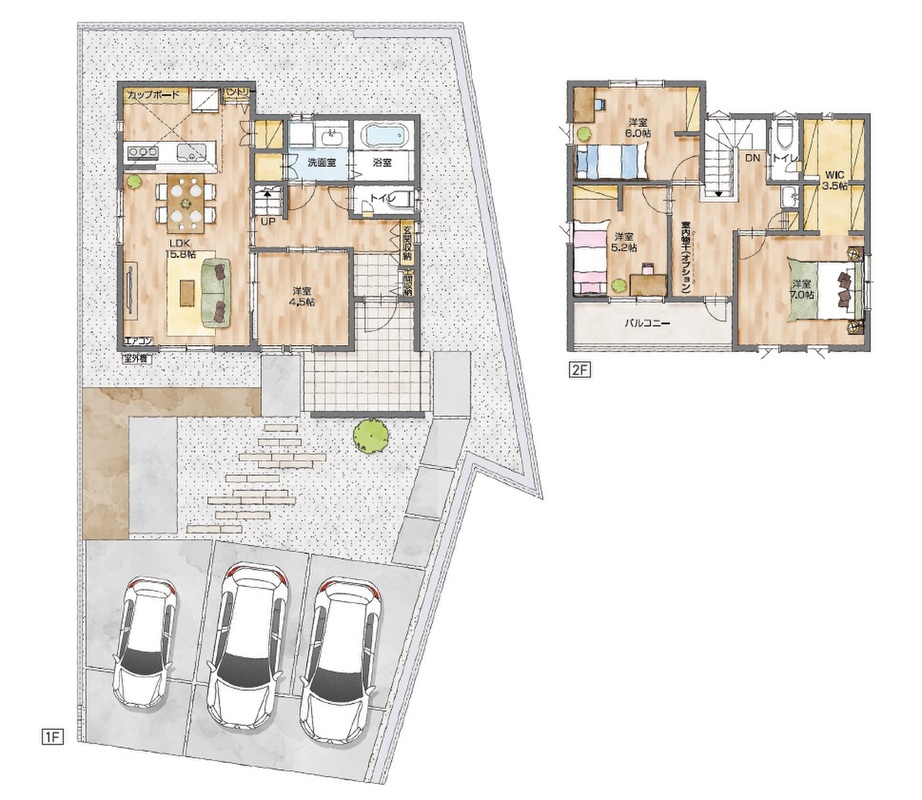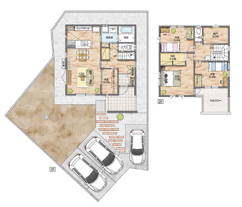 - ※完成予想図やCG合成画像は、門塀・植栽・庭・外観等、実際とは多少異なる場合があります。
