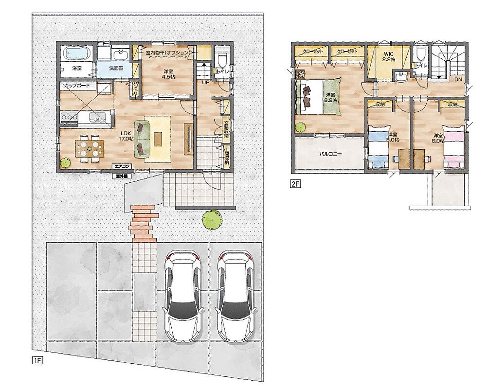 | 建物面積 | 101.02m2 (30.55坪)~ 103.5m2 (31.30坪) | 土地面積 | 187.27m2 (56.64坪)~ 223.77m2 (67.69坪) |