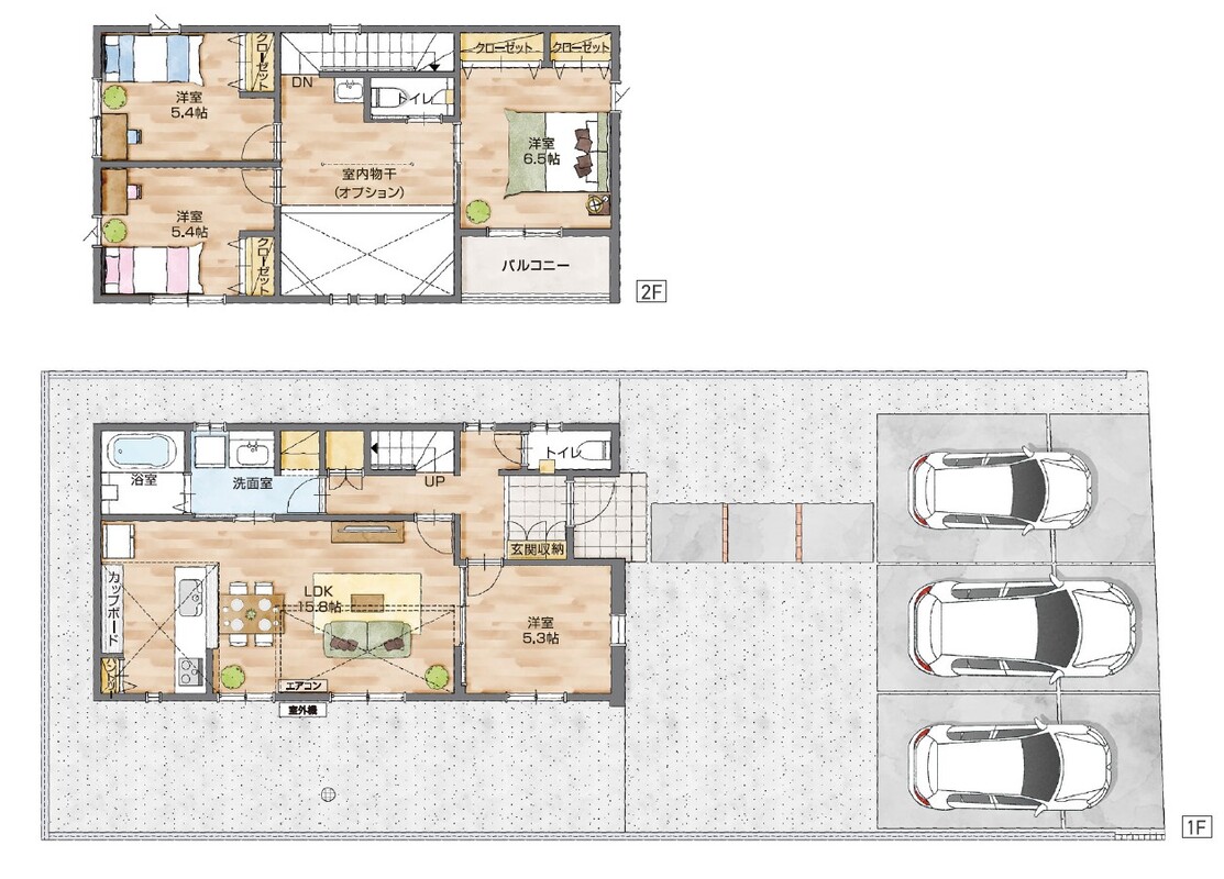 - ※完成予想図やCG合成画像は、門塀・植栽・庭・外観等、実際とは多少異なる場合があります。