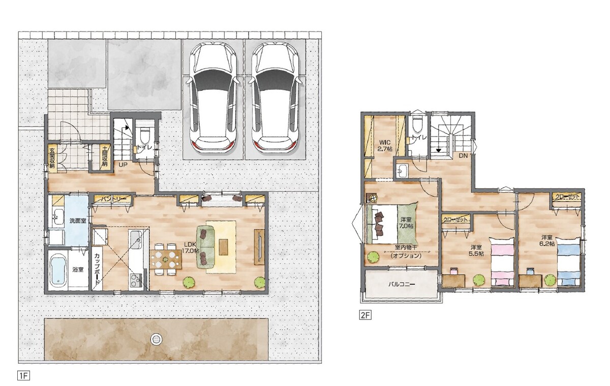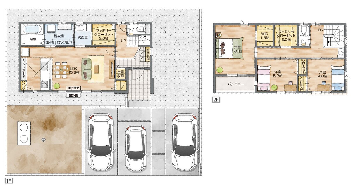 - ※完成予想図やCG合成画像は、門塀・植栽・庭・外観等、実際とは多少異なる場合があります。