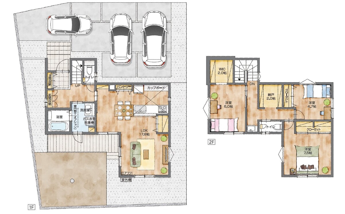 - ※完成予想図やCG合成画像は、門塀・植栽・庭・外観等、実際とは多少異なる場合があります。