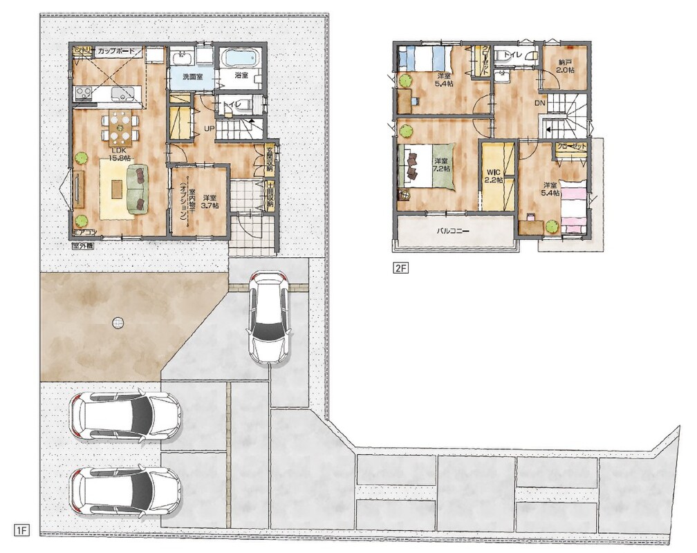 【人気の回遊動線】豊富な収納と便利な動線で無駄なく快適な住まい。駐車場3台以上&リビング横に洋室付きでご友人を招くゆとりもあります。