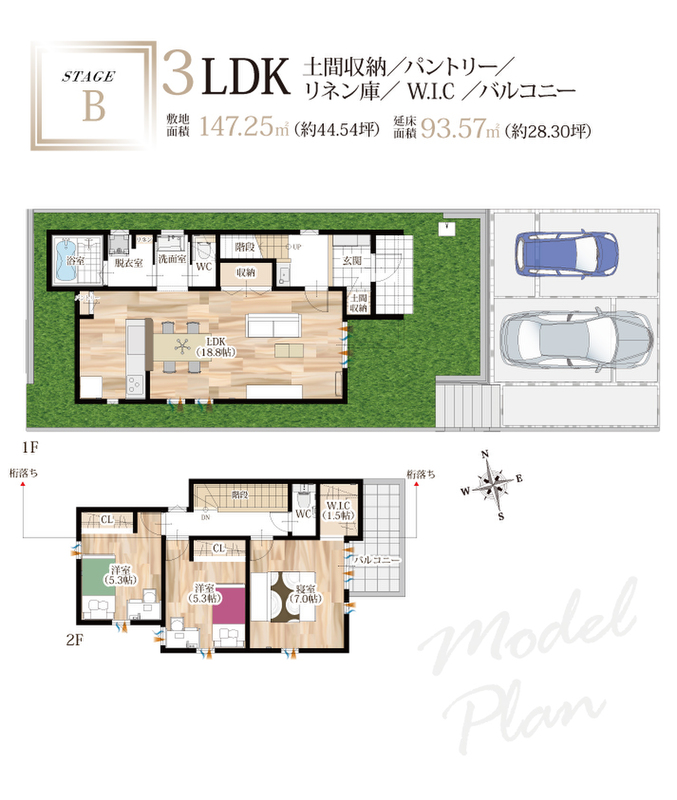 | 建物面積 | 93.57m2 | 土地面積 | 147.25m2 |