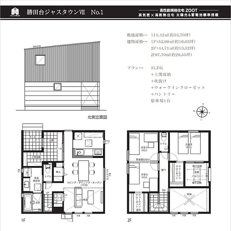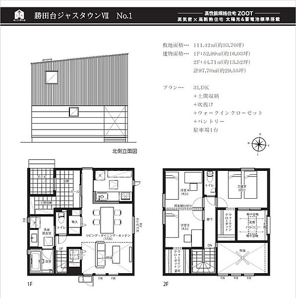 | 建物面積 | 97.70m2 | 土地面積 | 111.42m2 |