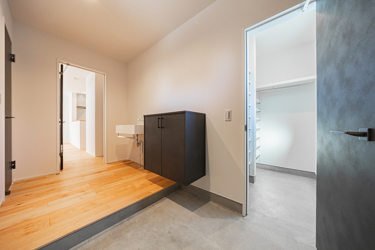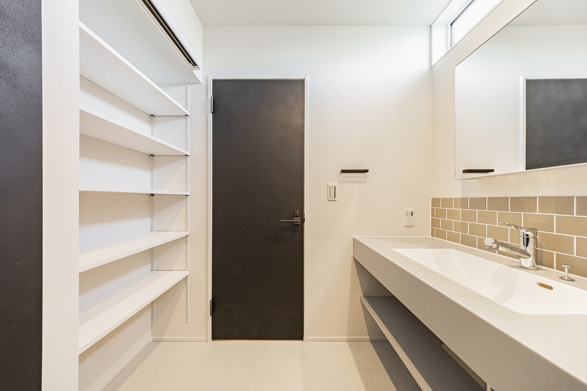 玄関に手洗いスペースを設置。手洗い習慣が身につきます。また、ベ...