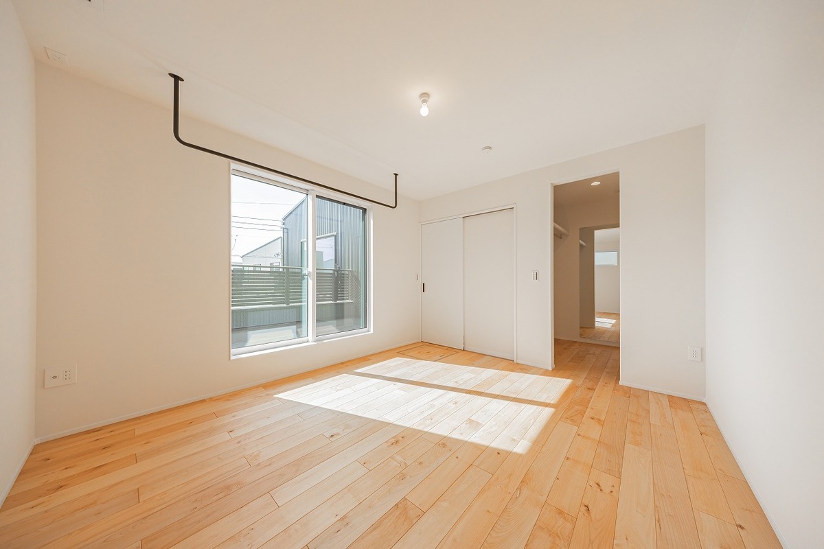 主寝室には大容量のWIC付き。洗濯物をバルコニーから室内の物干...