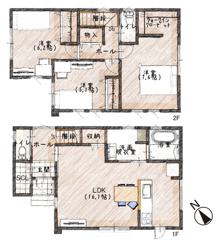 - ※完成予想図やCG合成画像は、門塀・植栽・庭・外観等、実際とは多少異なる場合があります。