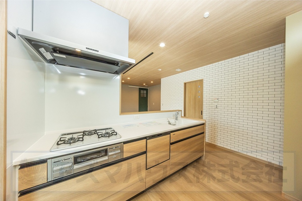 キッチンからは寛ぐ家族が見守れる設計。LDK三面床暖房など、家族皆が快適に過ごせる設備・仕様です。ソラエネネクスト(太陽光発電×エネファーム)付きの環境に配慮した住宅です。空家につき、随時ご内覧OK!