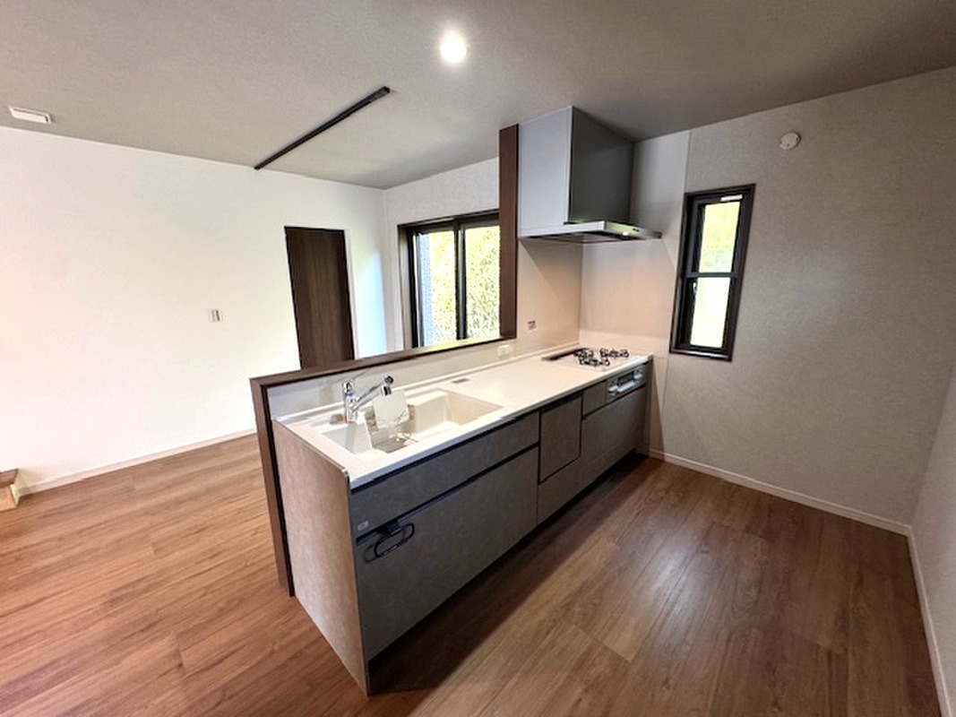 家族が集まるLDKは19帖以上!会話が弾む開放的な空間です。対面式キッチンはご家族とのコミュニケーションが増えます!ガラストップコンロはお手入れもラクラク!シューズインクローゼットやWクローゼットなど収納豊富です!各階にトイレがあるので来客時にも気兼ねなく使えて便利!暗い空間になりがちな階段も、窓を設置することで光が降り注ぐ空間に。水回りを集約し家事動線が整っています。家族それぞれの暮らしやすさにこだわったプランニングです。お気軽にお問い合わせください。
