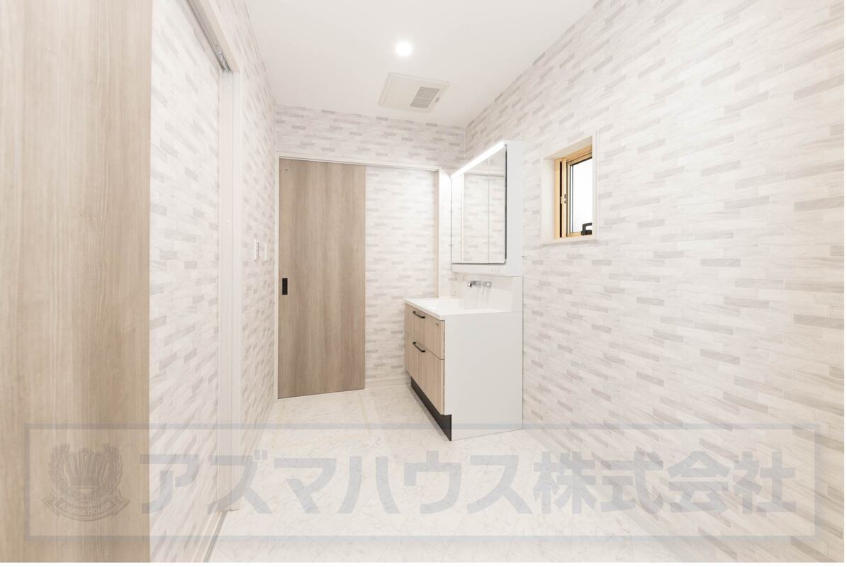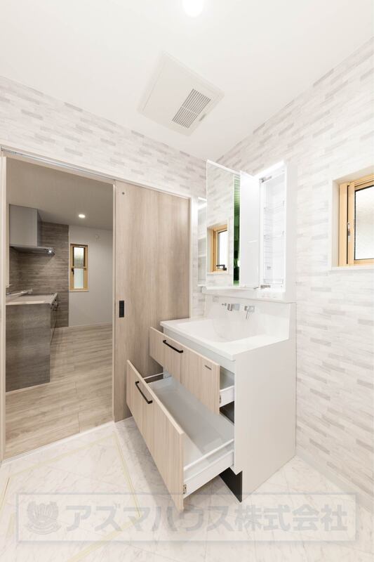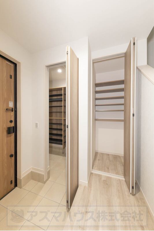 廊下、キッチンと繋がる2WAY洗面室で家事動線スムーズ!ご要望の多いパントリーやシューズインクローゼットを備えています。家事動線の整った快適な生活が過ごせる、ファミリーにおすすめの一邸。!