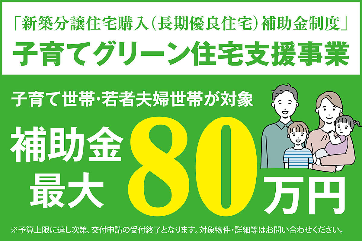 「子育てグリーン住宅支援事業」最大80万円(1・2号地)の補助対象物件!!”エコでお洒落で住みやすい!”と三拍子揃ったバランスのよいお家となっております。実際の仕様をぜひご覧の上、ご検討下さいませ。