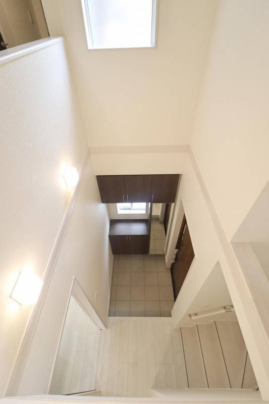 玄関には自然光が入り明るい吹抜を採用。