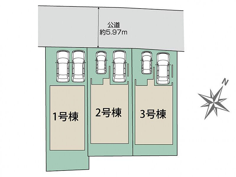 | 駐車場 | 2台 | 道路の幅員 | 南5.97m公道 |