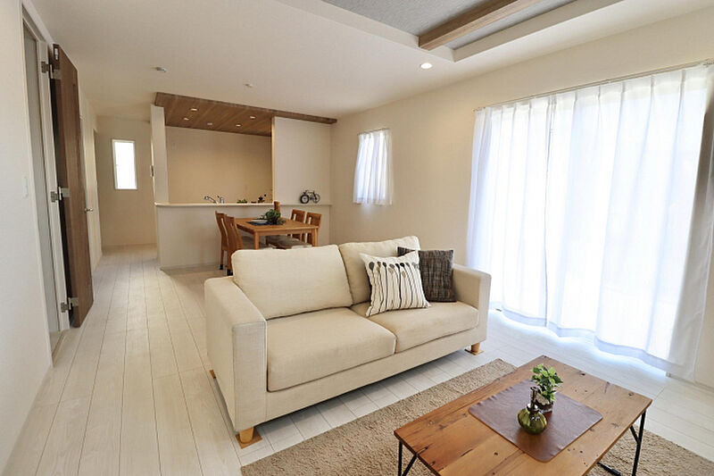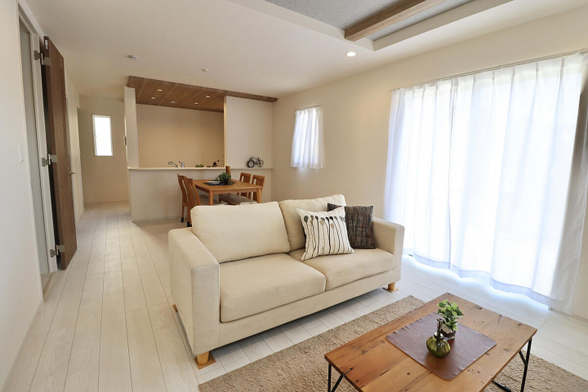 リビングには開放感を演出する折上天井を採用し、明るく気持ちの良い空間を実現。