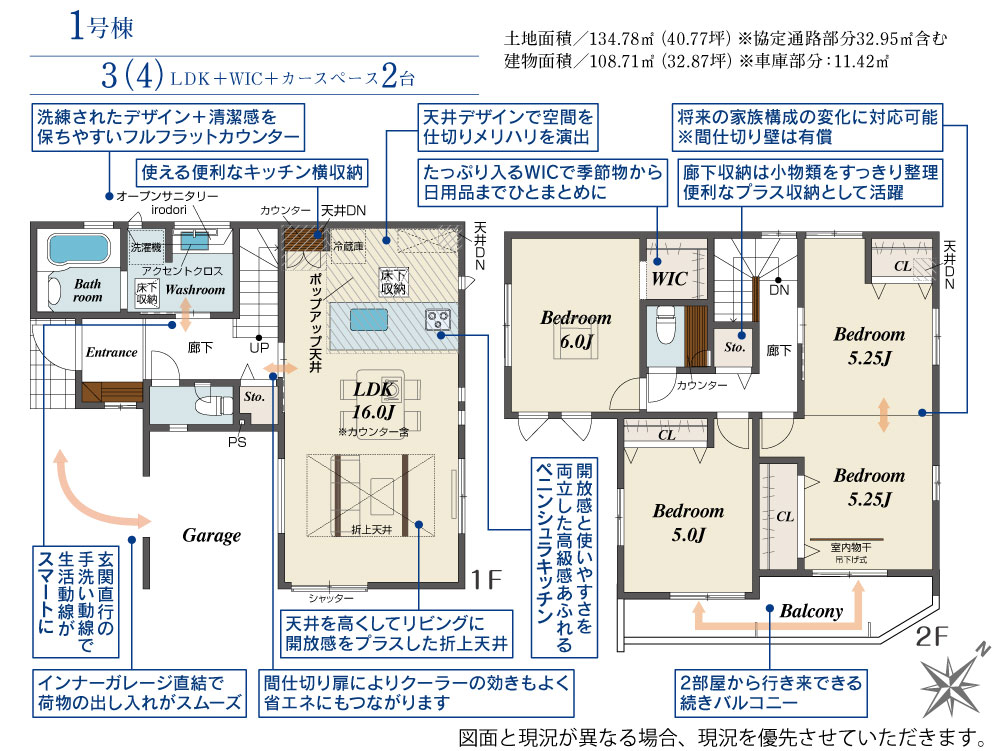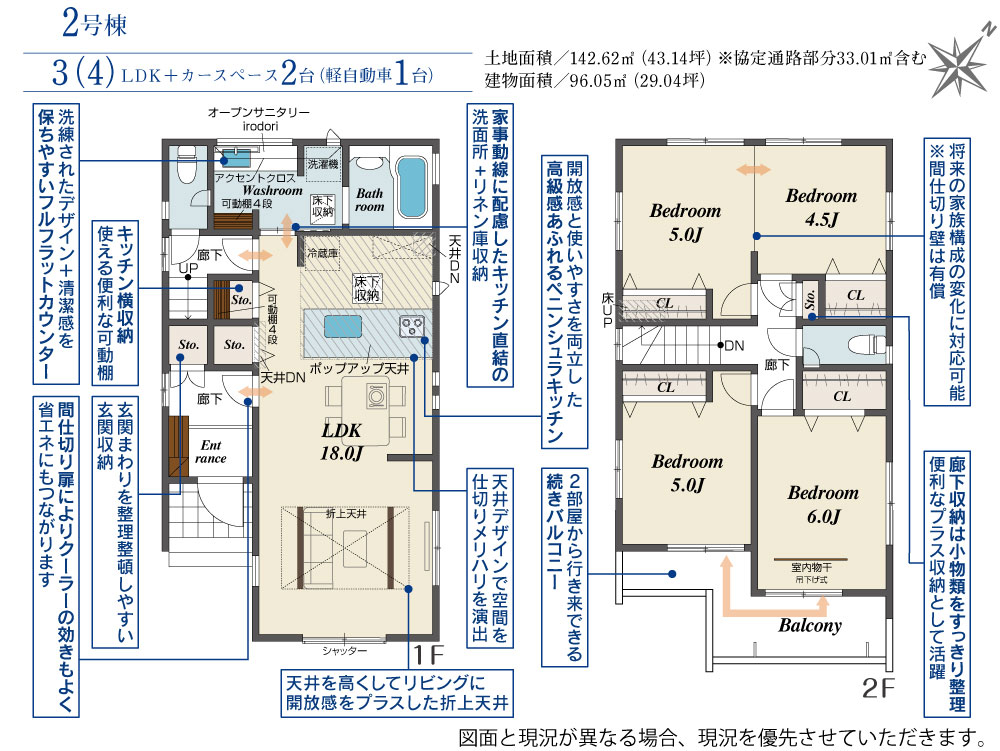 | 建物面積 | 96.05m2(約29.05坪)~108.71m2(約32.88坪) | 土地面積 | 134.78m2(約40.77坪)~142.62m2(約43.14坪) |