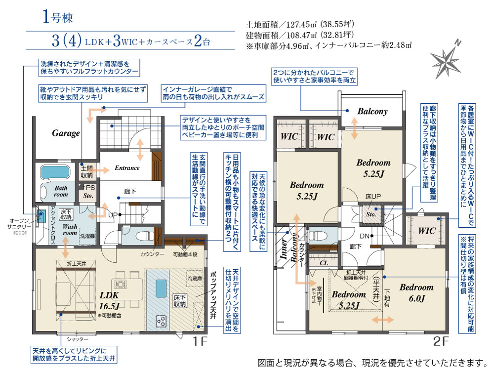 | 建物面積 | 108.47m2(約32.81坪) | 土地面積 | 127.45m2(約38.55坪) |