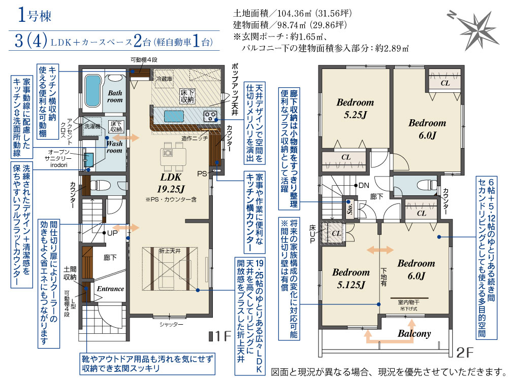 | 建物面積 | 98.74m2(約29.86坪) | 土地面積 | 104.36m2(約31.56坪) |