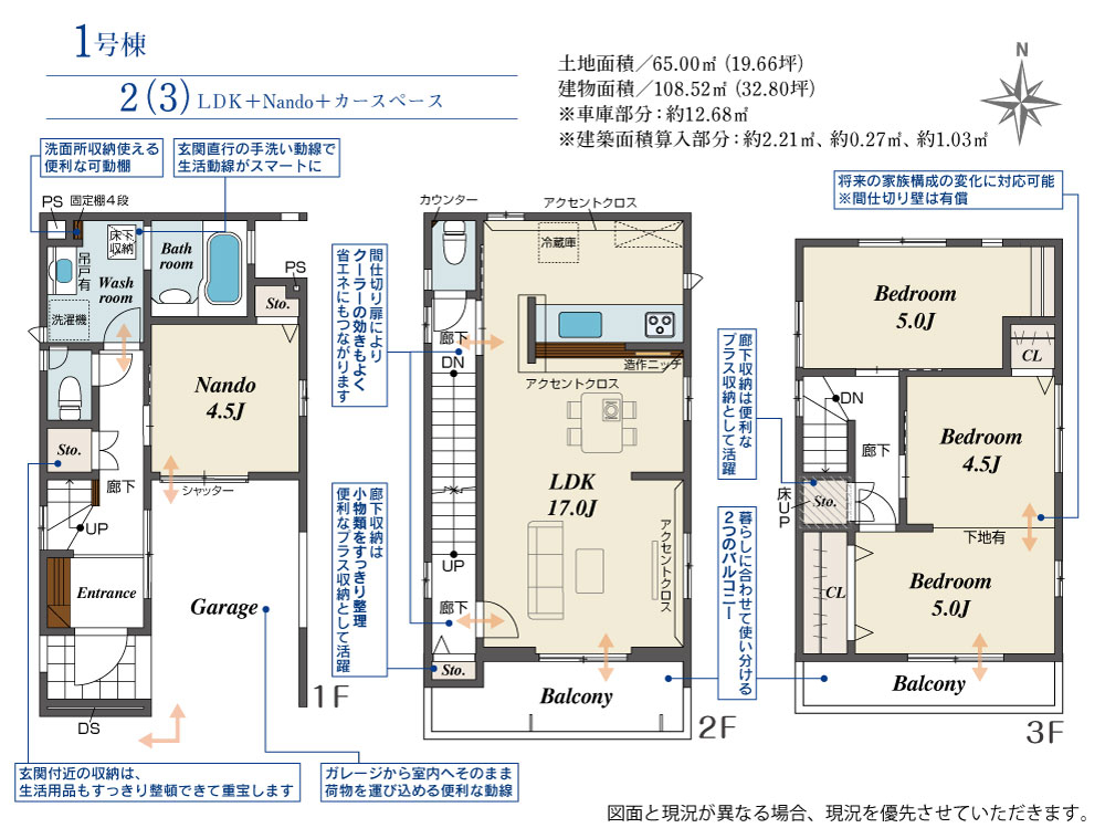 | 建物面積 | 108.52m2(約32.82坪) | 土地面積 | 65.00m2(約19.66坪) |