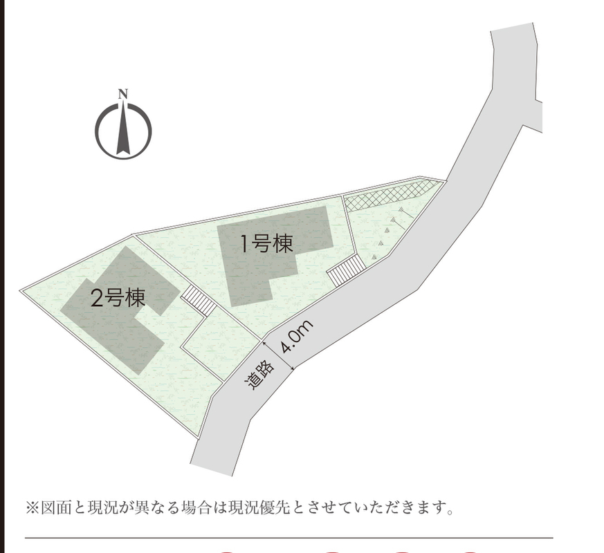 | 駐車場 | 2台 | 道路の幅員 | 東南側4m |