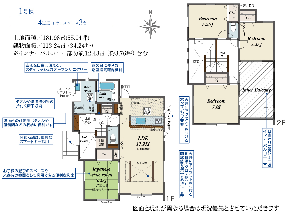 | 建物面積 | 113.24m2(約34.25坪) | 土地面積 | 181.98m2(約55.04坪) |