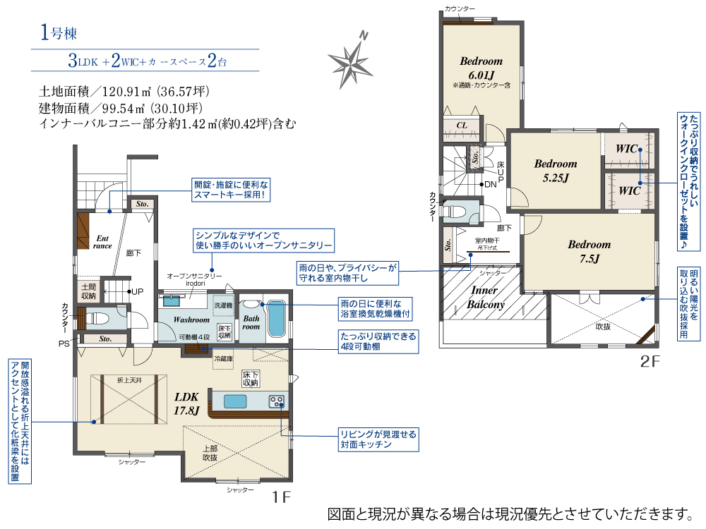 | 建物面積 | 99.54m2(約30.11坪) | 土地面積 | 120.91m2(約36.57坪) |