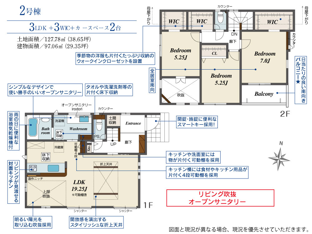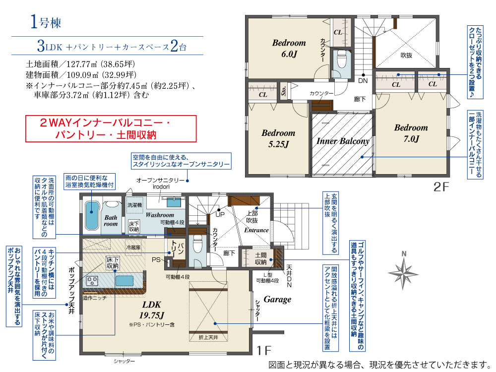 | 建物面積 | 97.06m2(約29.36坪)~109.09m2(約32.99坪) | 土地面積 | 127.77m2(約38.65坪)~127.78m2(約38.65坪) |