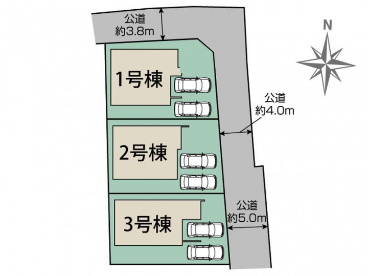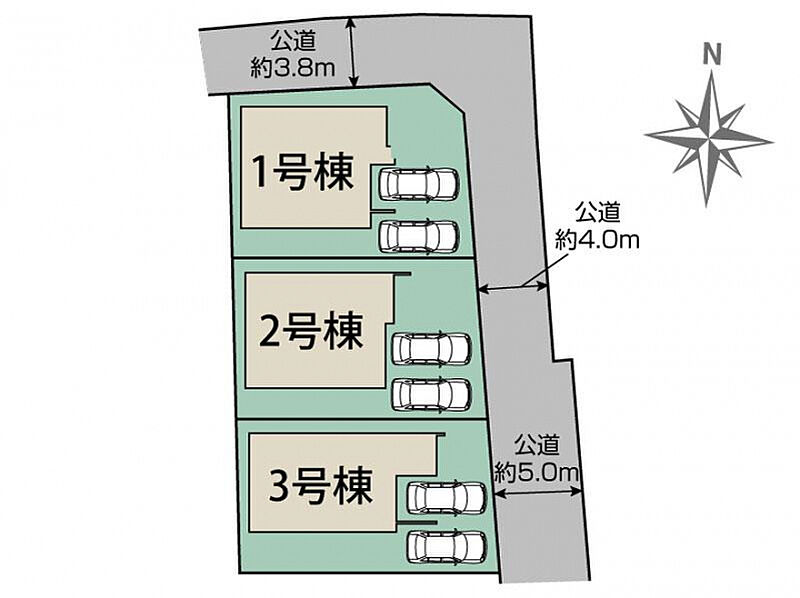 | 駐車場 | 3台 | 道路の幅員 | 北約4.0m公道、東約4.0m公道 |