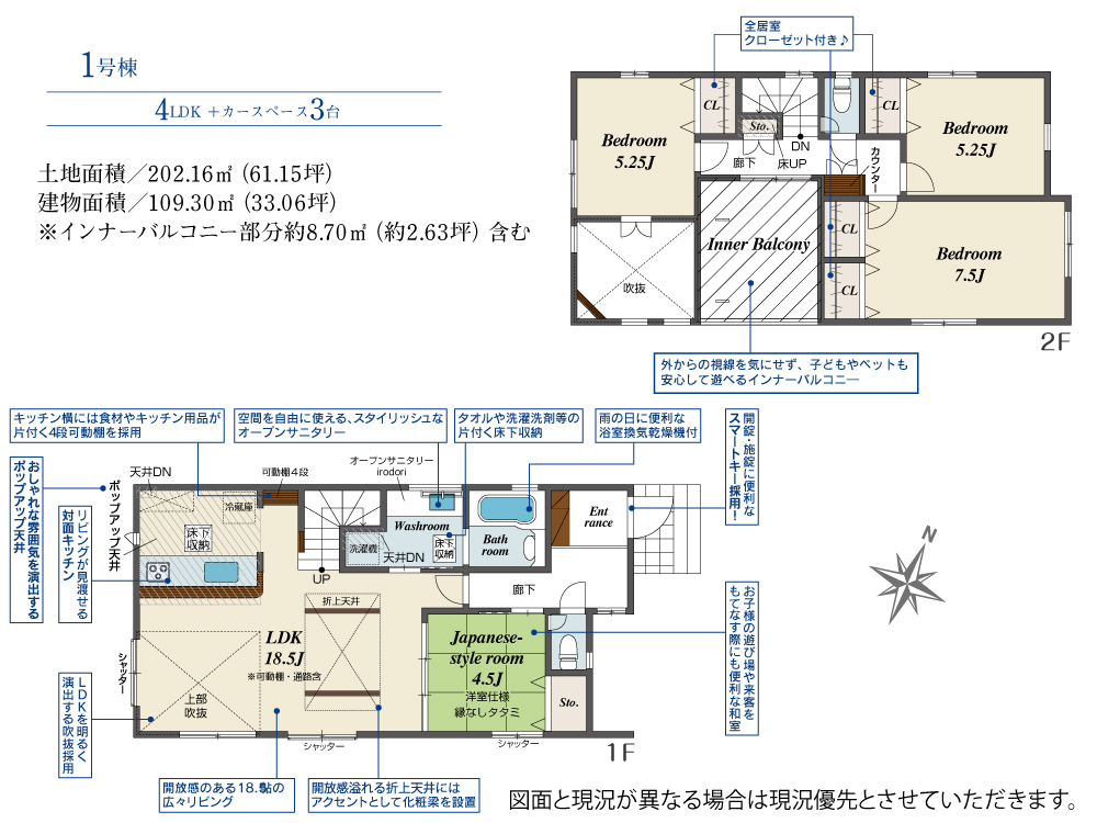 | 建物面積 | 109.30m2(約33.06坪) | 土地面積 | 202.16m2(約61.15坪) |