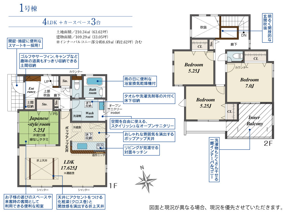 | 建物面積 | 109.29m2(約33.06坪) | 土地面積 | 210.34m2(約63.62坪) |