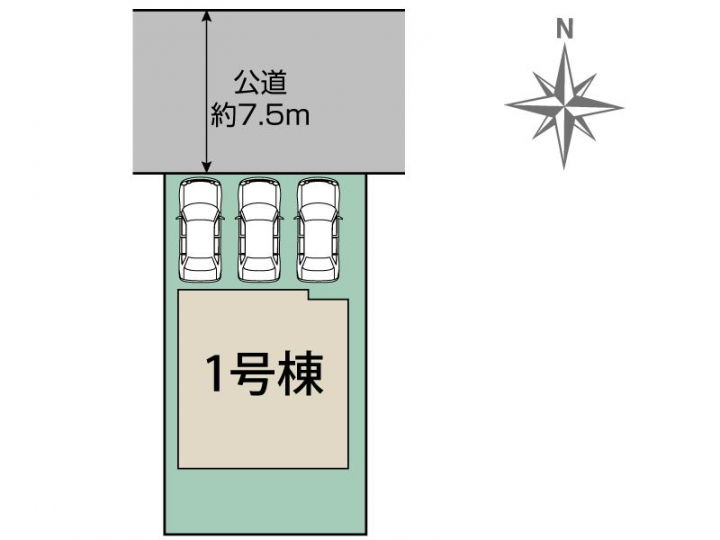 | 駐車場 | 3台 | 道路の幅員 | 北7.5m公道 |