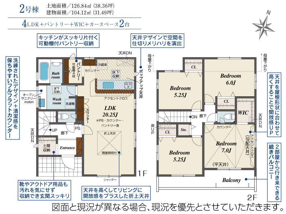 | 建物面積 | 104.12m2(約31.49坪)~104.16m2(約31.50坪) | 土地面積 | 125.32m2(約37.90坪)~127.45m2(約38.55坪) |