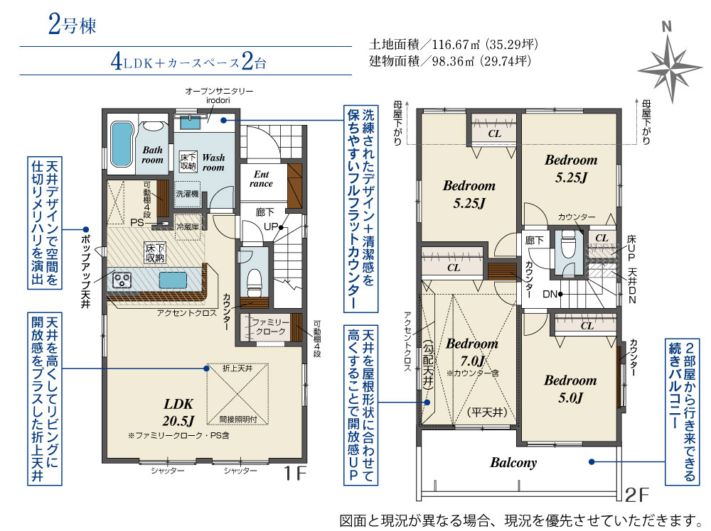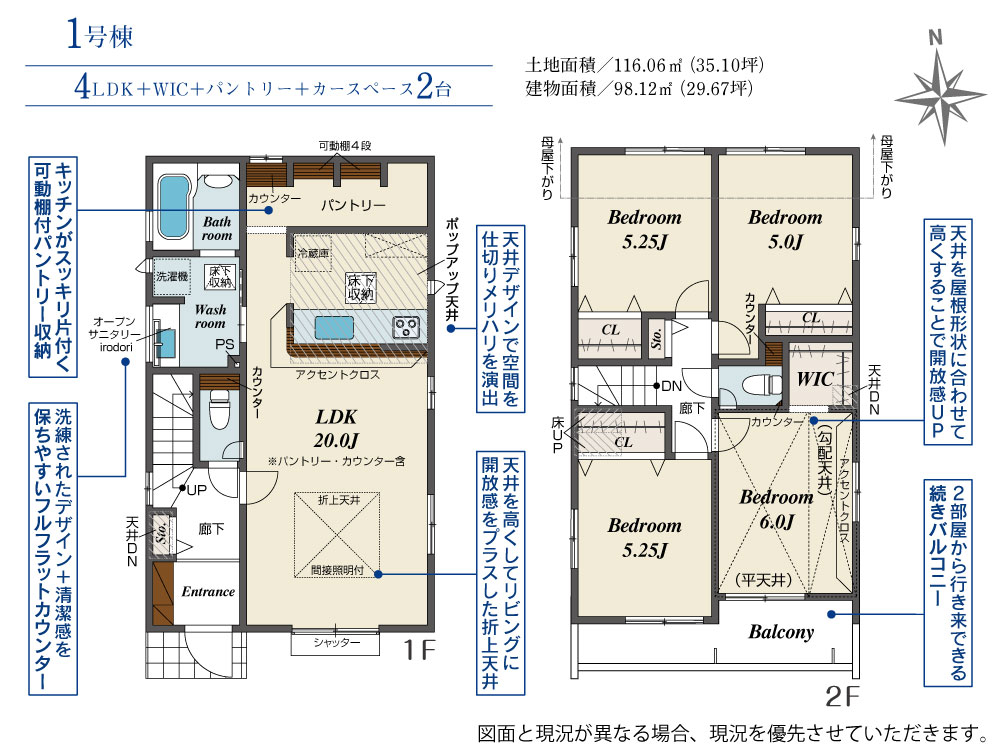 | 建物面積 | 98.12m2(約29.68坪)~98.36m2(約29.75坪) | 土地面積 | 116.06m2(約35.10坪)~116.67m2(約35.29坪) |
