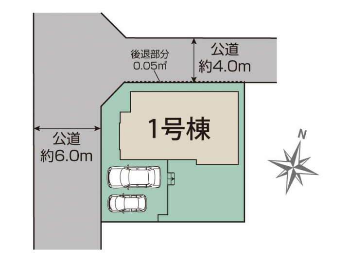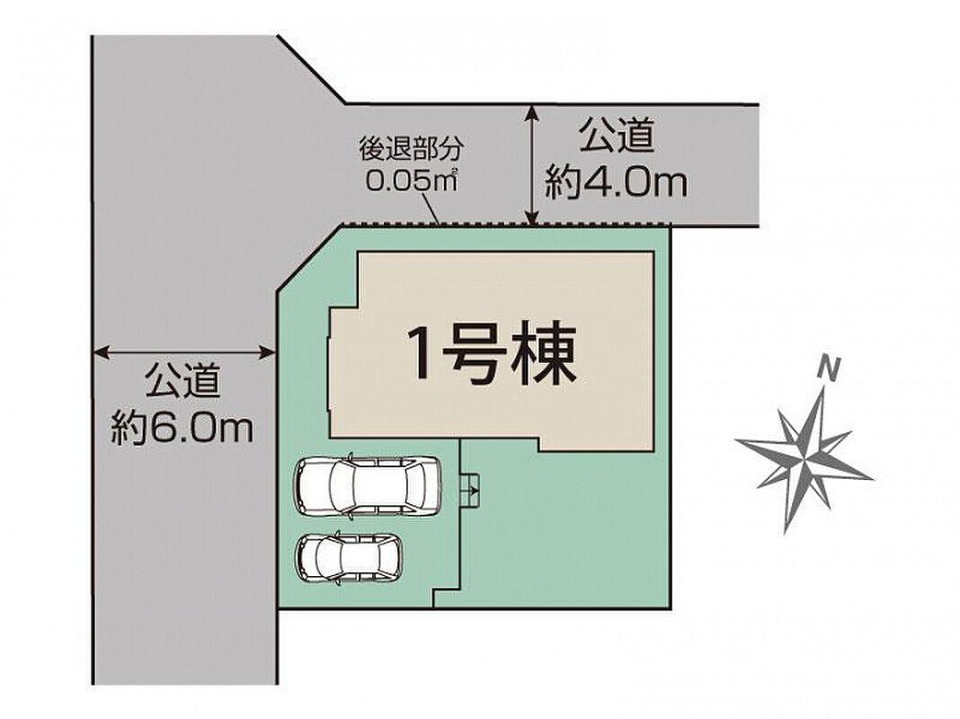 | 駐車場 | 2台 | 道路の幅員 | 南西6.0m公道、北西4.0m公道 |