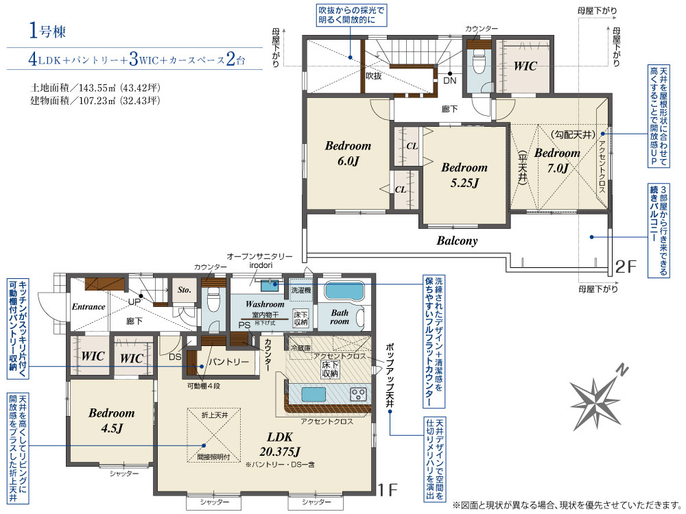 | 建物面積 | 107.23m2(約32.43坪) | 土地面積 | 143.55m2(約43.42坪) |