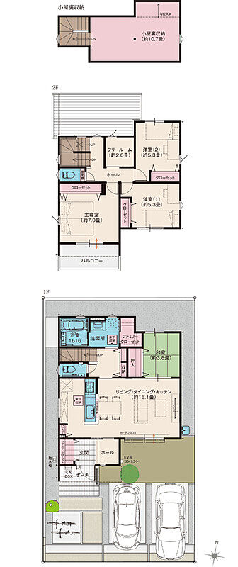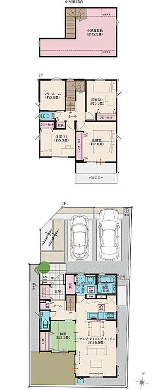 | 建物面積 | 101.85m2m2(5号地)・101.02m2(12号地) | 土地面積 | 143.92m2(5号地)・134.66m2(12号地) |