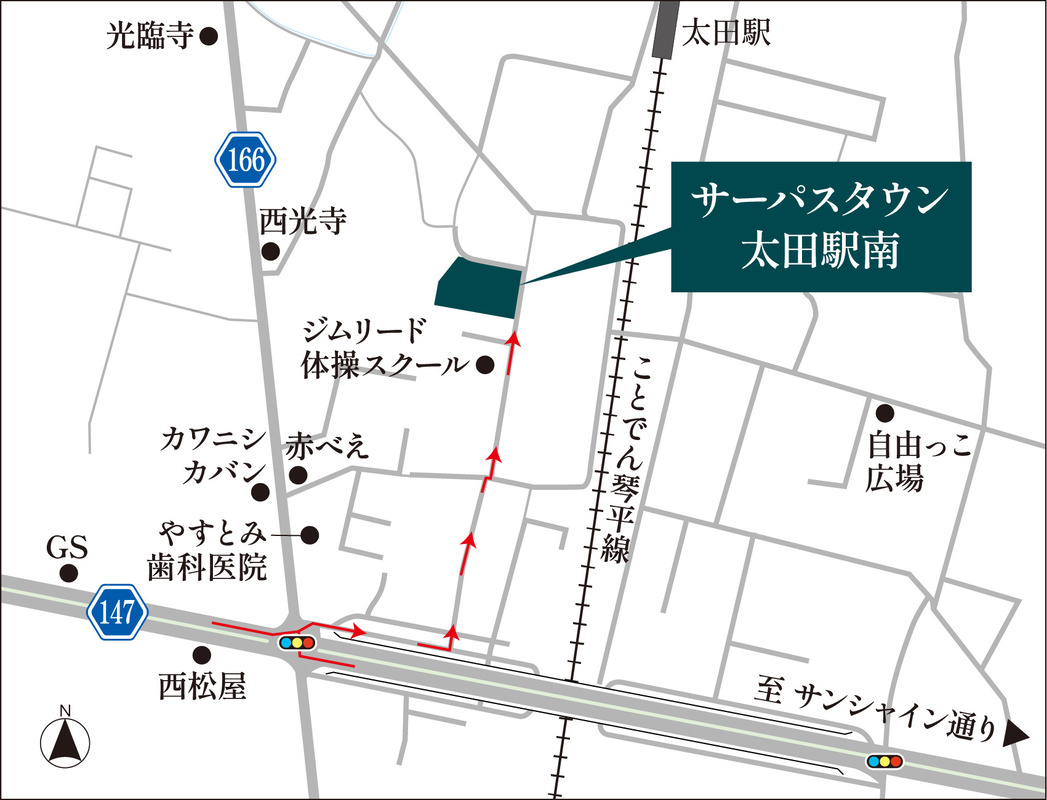 ことでん「太田」駅まで徒歩4分(約250m~310m)