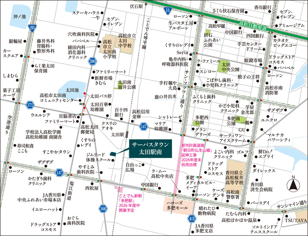 ことでん琴平線「太田」駅 (約250m(1号地)~約310m(11号地) 徒歩4分)