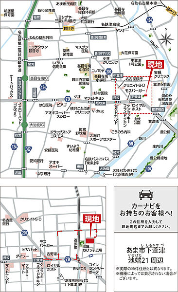 名鉄名古屋本線「須ケ口」駅 徒歩約27分 自転車約9分 名鉄津島線「須ケ口」駅 徒歩約27分 自転車約9分 名鉄津島線「甚目寺」駅 徒歩約29分 自転車約10分 |